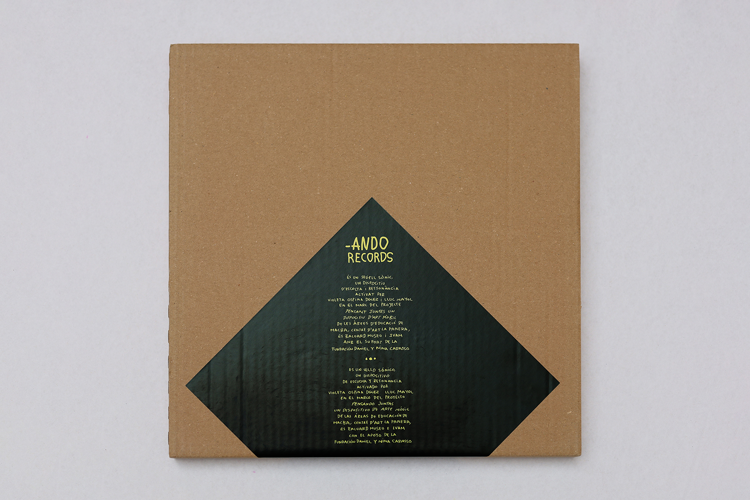 -ANDO RECORDS és un segell sònic, un dispositiu d’escolta i de ressonància, activat per Lluc Mayol i Violeta Ospina Dguez en el marc del projecte Pensant juntes un dispositiu d’art mòbil de les àrees d’educació del MACBA, el Centre d’Art la Panera, Es Baluard Museu i l’IVAM amb el suport de la Fundación Daniel y Nina Carasso.