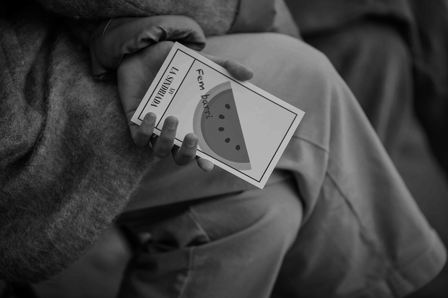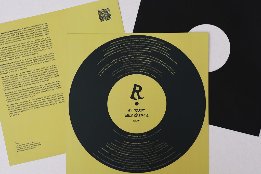 «I quan parlarem del turisme al barri?», va ser la pregunta que una veïnada li va llançar a n’Eva durant un taller al museu. Una resposta possible és aquesta baralla de cartes del segell -ANDO RECORDS, que et convida a abordar els efectes de la gentrificació i del turisme des de l’experiència situada de dones de classe mitjana associades a Palma i des del desig d’activar la imaginació política i d’enfortir els vincles comunitaris a través de l’art amb intenció social.