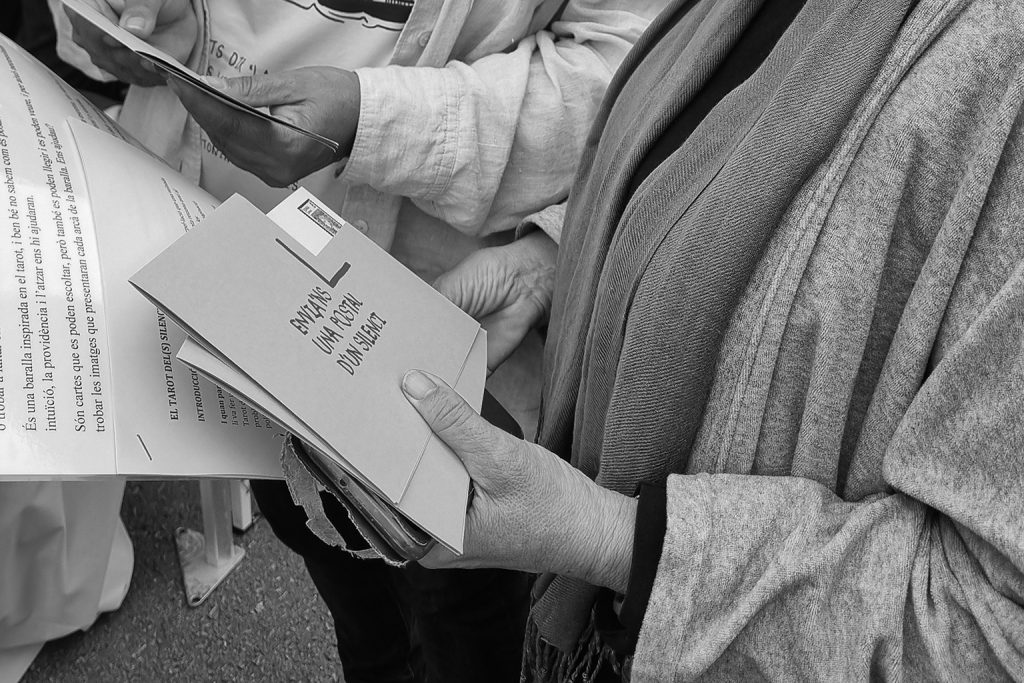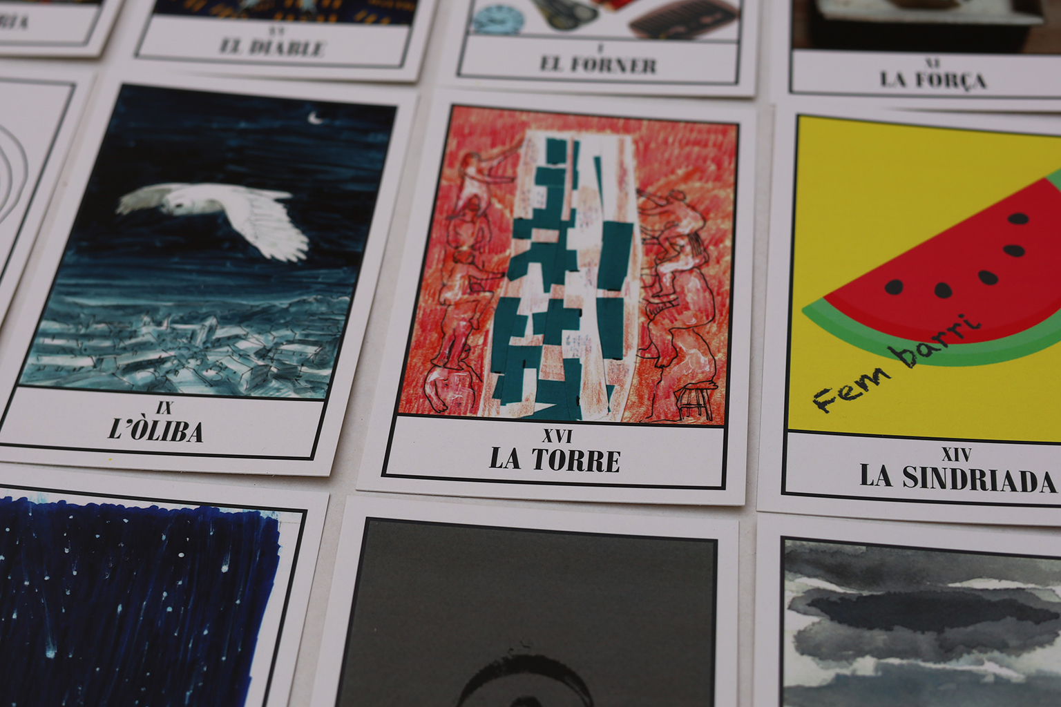 i lúdic, inspirades en els jocs surrealistes. Vio va convertir les tipologies de silencis en arcans. Els llegírem i els editàrem en veu alta. Lluc va fer una postal i un cartell amb instruccions per rebre il·lustracions. Les veïnades les distribuïren, feren una parada informativa i un taller de dibuix. Vàrem rebre més de 30 imatges!