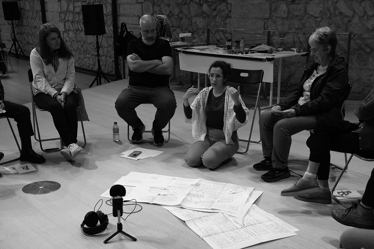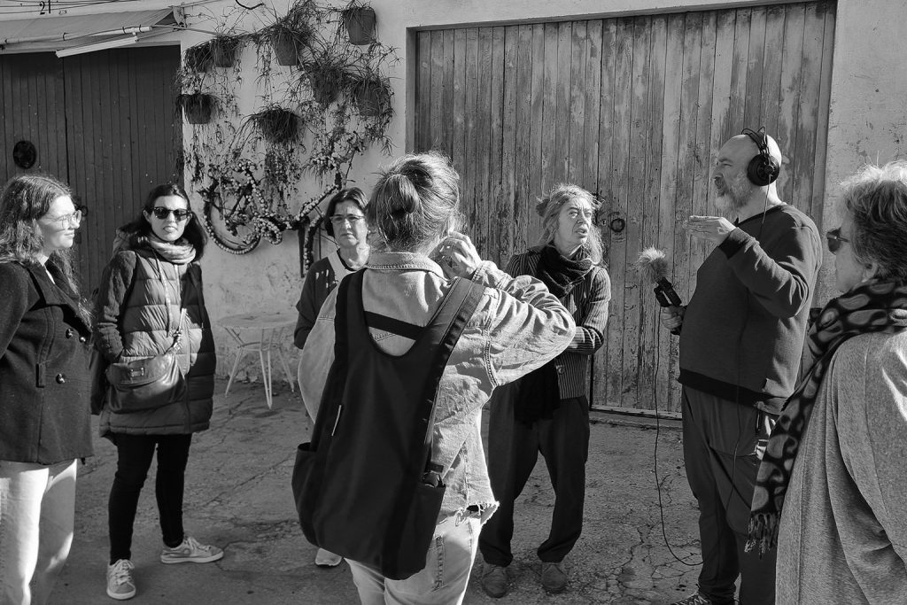 Una mica d’història. Durant sis mesos, entre el 2024 i el 2025, juntament amb aquestes veïnades dels barris del Puig de Sant Pere, Santa Creu, la Llotja, Santa Catalina i el Jonquet, a Palma, Lluc i Vio, amb el desig compartit per Eva i María des d’Es Baluard Museu, obrim un espai d’escolta i pràctica d’aquesta i altres preguntes. En aquest marc, el dret al silenci va aparèixer com a necessitat davant els malestars provocats pel renou de la saturació turística, les transformacions de l’entorn i l’aïllament quotidià.